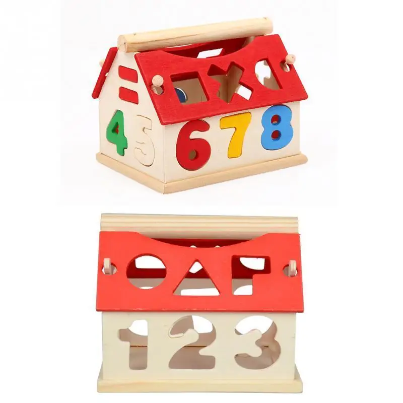 Natural Wooden Cube Blocks House Kids Accessories Intellectual Developmental Building Baby Educatio