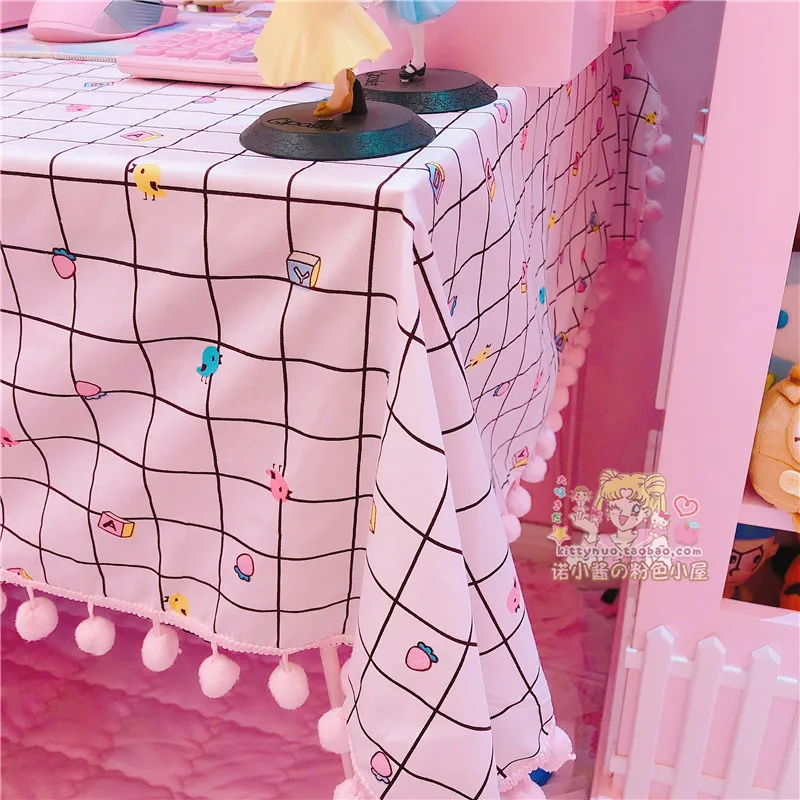Lovely black and white grid fabric Lace 160cm doll house accessories table cloth girls Home decorat